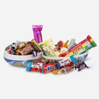 Godtebottle fylt med ca. 300 g deilig smågodt. Et moderne påskeegg for dem som elsker godteri til påske, men som også er miljøbevisste og ønsker en forpakning som kan brukes om og om igjen. Flasken uten godteri kan f.eks. brukes til oppbevaring av vann, saft og jus og brukes på tur, trening, jobb og mange andre steder.