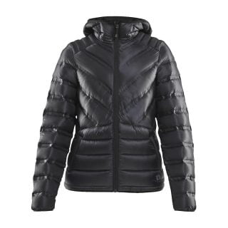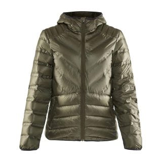 Lett dunjakke med limte kanaler, formet hette og to sidelommer med glidelås. Vekt 90g.
