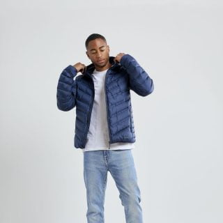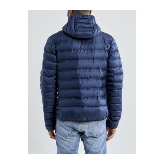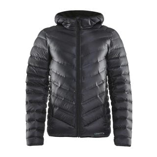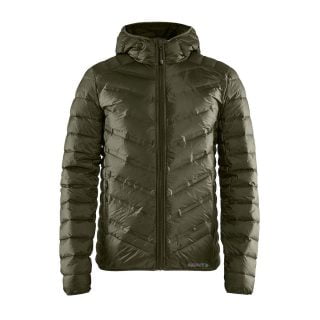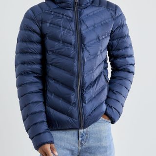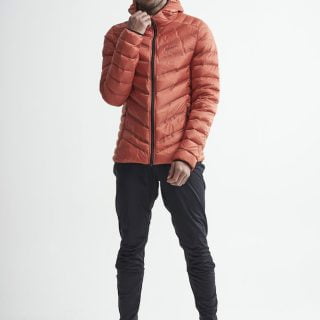 Lett dunjakke med limte kanaler, formet hette og to sidelommer med glidelås. Vekt 90g.