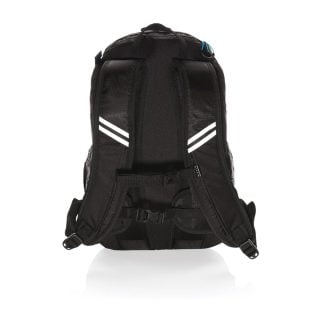 Bær og beskytt dine ting i denne sporty ryggsekken. Sekken er laget av ribstop materiale og er har medium størrelse på lommene internt og eksternt., samt mesh-padding på baksiden som gjør at den er komfortabel å bære med seg. Sekken er et stort hovedrom, med egen plass til din 15,4″ laptop. Et integrert regntrekk beskytter sekken mot regn. Kontrastdetaljer gir ekstra farge og stil til designet. PVC fri.