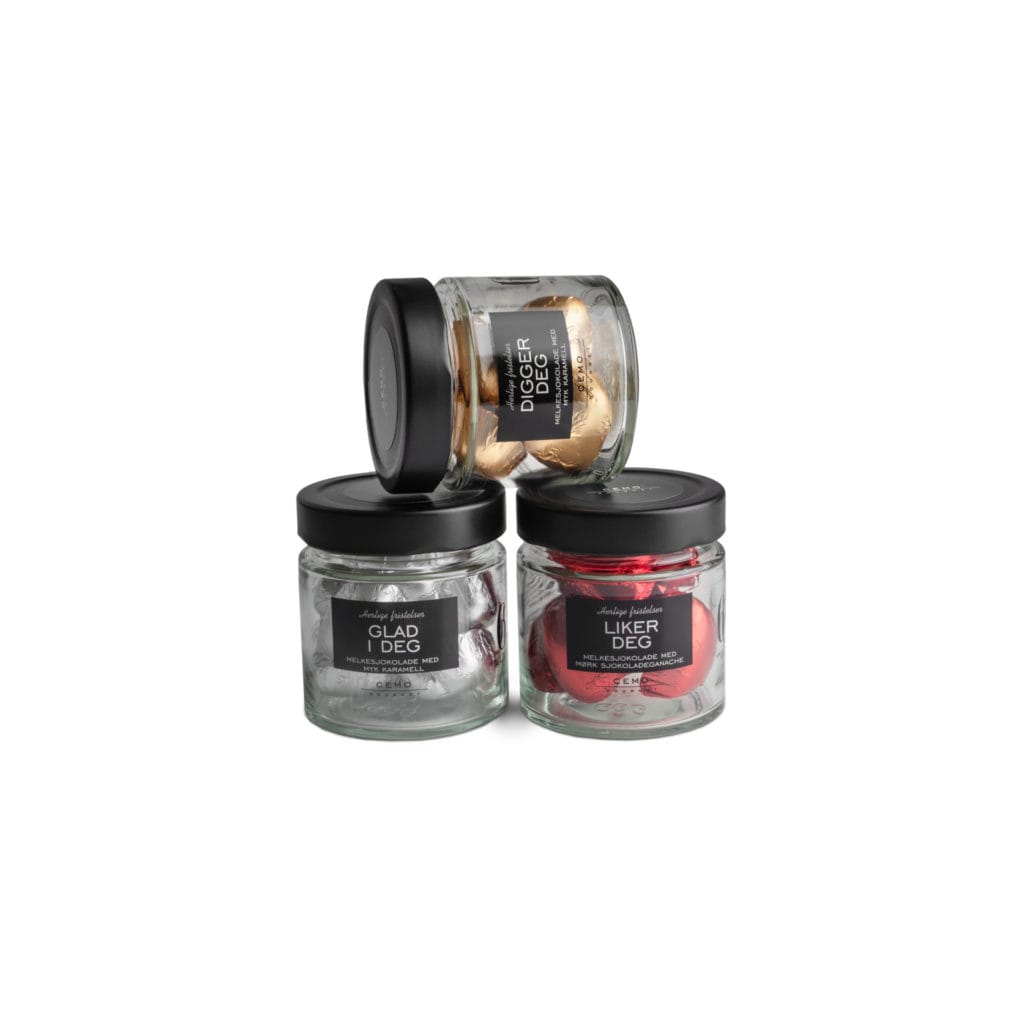 Glad i deg: Sukker, invertsukkersirup, helmelkspulver, kakaosmør, smørolje (melk), kakaomasse, laktose, glukosesirup, karamellisert sukker, helmelk, vann, vaniljearoma, emulgator (soyalecitin), vaniljeekstrakt. Kan inneholde spor av gluten, egg og nøtter. Nettovekt: 100 g
