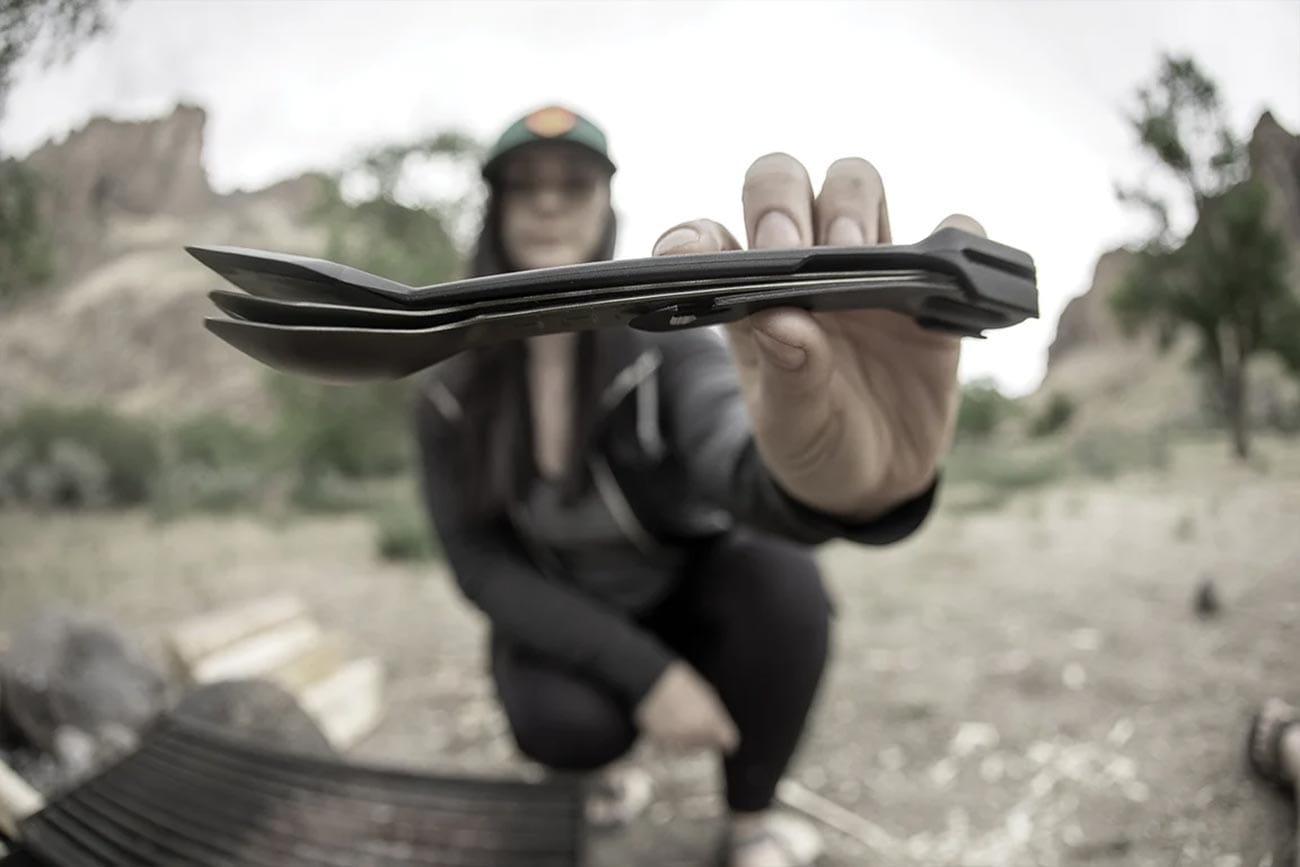 På tur er det viktigste måltidet det du snart skal spise. Gerbers ComplEAT er et bestikk med gaffel, skje, stekespade og multiverktøy med fire funksjoner som også holder alle delene sammen. Satt sammen fungerer også CompIEAT som tang for matlaging.