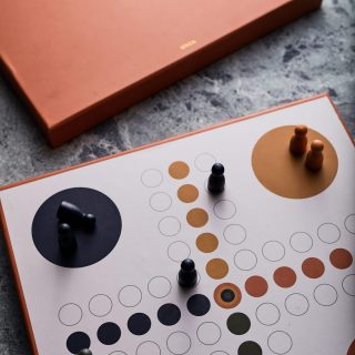 Klassisk Ludo, men et mye morsommere og stiligere design. Spillet kommer i en fin oppbevaringsboks, som i seg selv er et fint interiør til hjemmet.