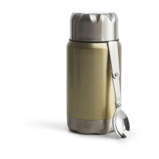 Liten og smidig mattermos med det lille ekstra. Stilig design i rustfritt stål med en liten sammenleggbar skje inkludert i lokket. Termosen har en stor åpning som gjør den enkel å rengjøre, og til å putte inn det du måtte ønske til pikniken!