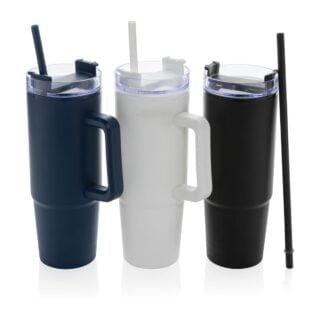 Det avanserte lokket har et roterende lokk med tre posisjoner: en sølsikker sugerørsåpning, en drikketut og et helt forseglet lokk. Det ergonomiske håndtaket med komfortable grep gjør det enkelt å bære, og den slanke basen passer i de fleste koppholdere i bilen. Kan kun vaskes for hånd.