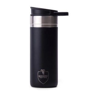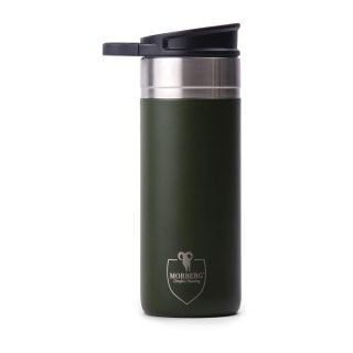 Vakuumisolert termoskopp av rustfritt stål med doble vegger der innerveggen er belagt med kobber for å gi best mulig varmekapasitet.