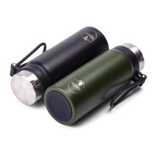 Vakuumisolert termoskopp av rustfritt stål med doble vegger der innerveggen er belagt med kobber for å gi best mulig varmekapasitet.