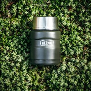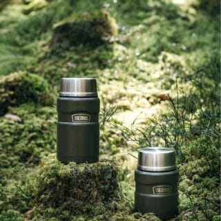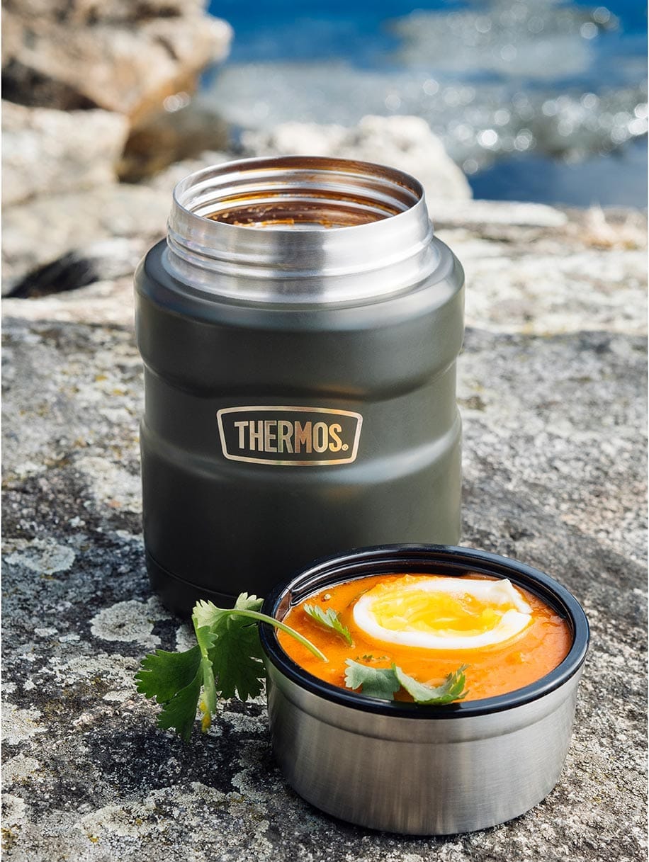 Thermos Stainless King mattermos av rustfritt stål, med sammenleggbar skje i lokket. Lokket kan brukes som skål til bl.a. suppe eller som kopp til drikke. Godt egnet for varm, kald og frossen mat, samt kald og varm drikke, og holder innholdet varmt i opptil 14 timer og kaldt i opptil 24 timer. Perfekt til jobb, skole eller utflukter.
